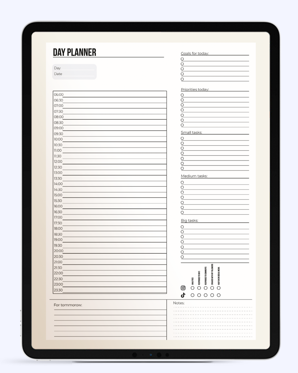 - Full daily page with 6 AM - 12 AM timetable
